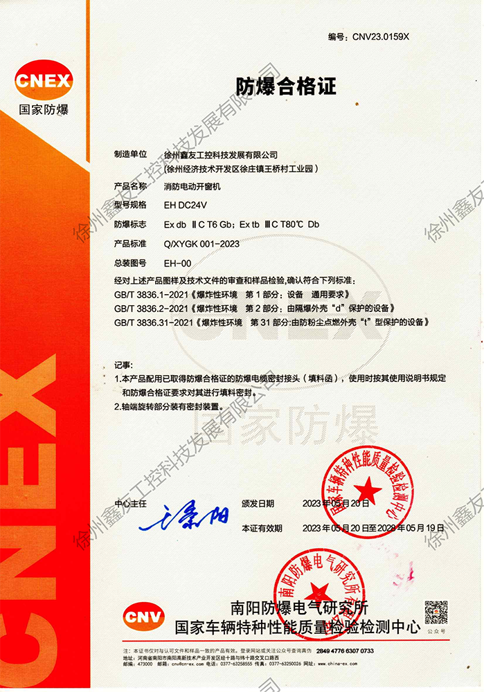 徐州鑫友工控科技發(fā)展有限公司成立于2008年,占地31600平方米,全資子公司:江蘇良紫工程科技有限公司,旗下 有“鑫友”及“MASTER.W主人窗控”兩個(gè)品牌系列,公司全面貫徹執(zhí)行IS09001:2015質(zhì)量管理體系標(biāo)準(zhǔn),產(chǎn)品順利通過(guò)歐盟CE認(rèn)證和中國(guó)***消防電子產(chǎn)品認(rèn)證,通過(guò)可燃性粉塵環(huán)境下、爆炸性環(huán)境下防爆合格產(chǎn)品檢驗(yàn)。排煙天窗整窗通過(guò)***消防產(chǎn)品質(zhì)量監(jiān)督檢驗(yàn)中心檢測(cè)。先后獲得多項(xiàng)******及榮譽(yù)證書(shū)。集研發(fā)、加工、生產(chǎn)、制造、銷售、安裝及售后于一體,是一家高起點(diǎn)、研發(fā)能力強(qiáng)的專業(yè)智能化***技術(shù)企業(yè)。